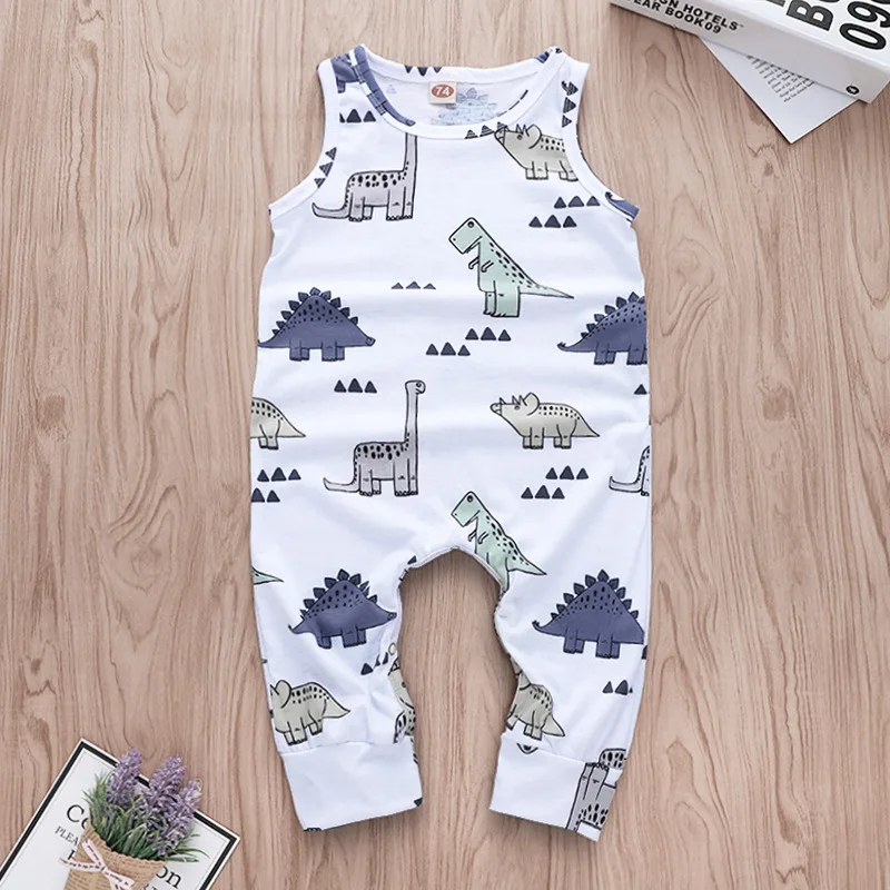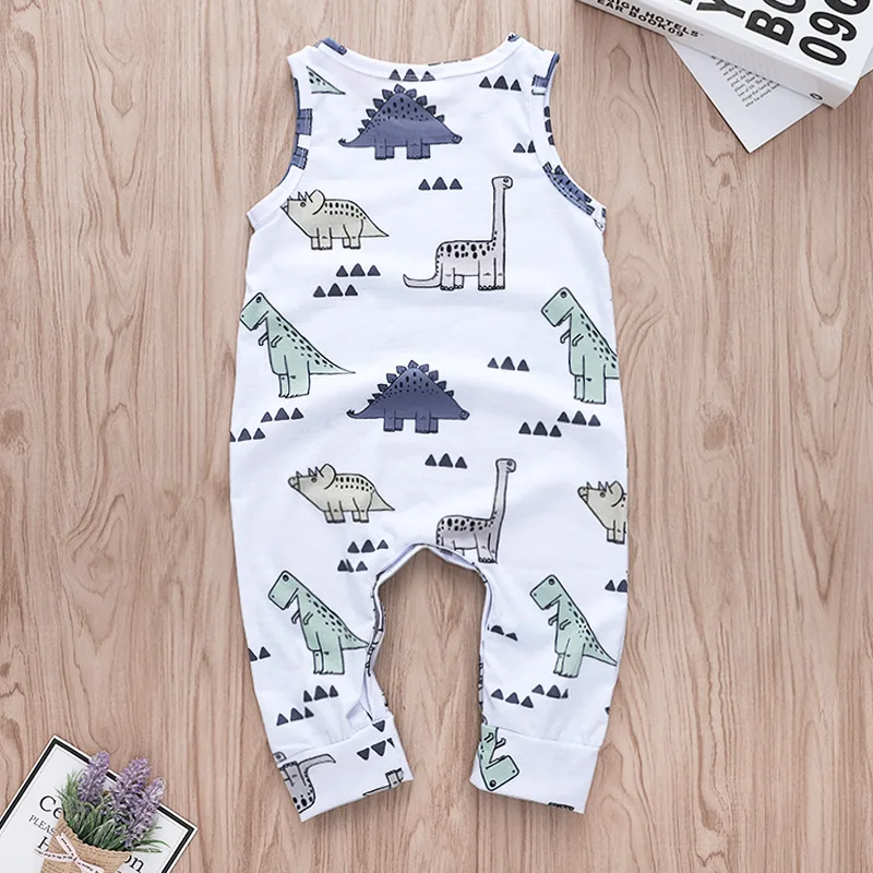 2018 Baby Boy Romper Cartoon Dinasour Sleeveless Romper Infant Jumpsuit Unisex Baby Clothes Summer