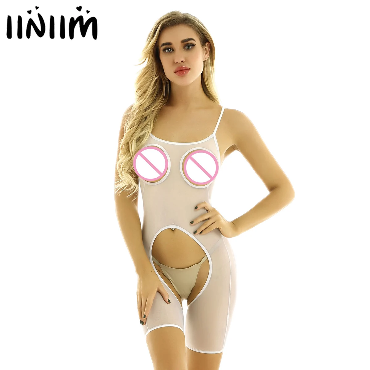 Hot Womens Mesh See-through Sheer Lingerie Transparent Baby Doll Open Cups Crotchless Sissy Exotic
