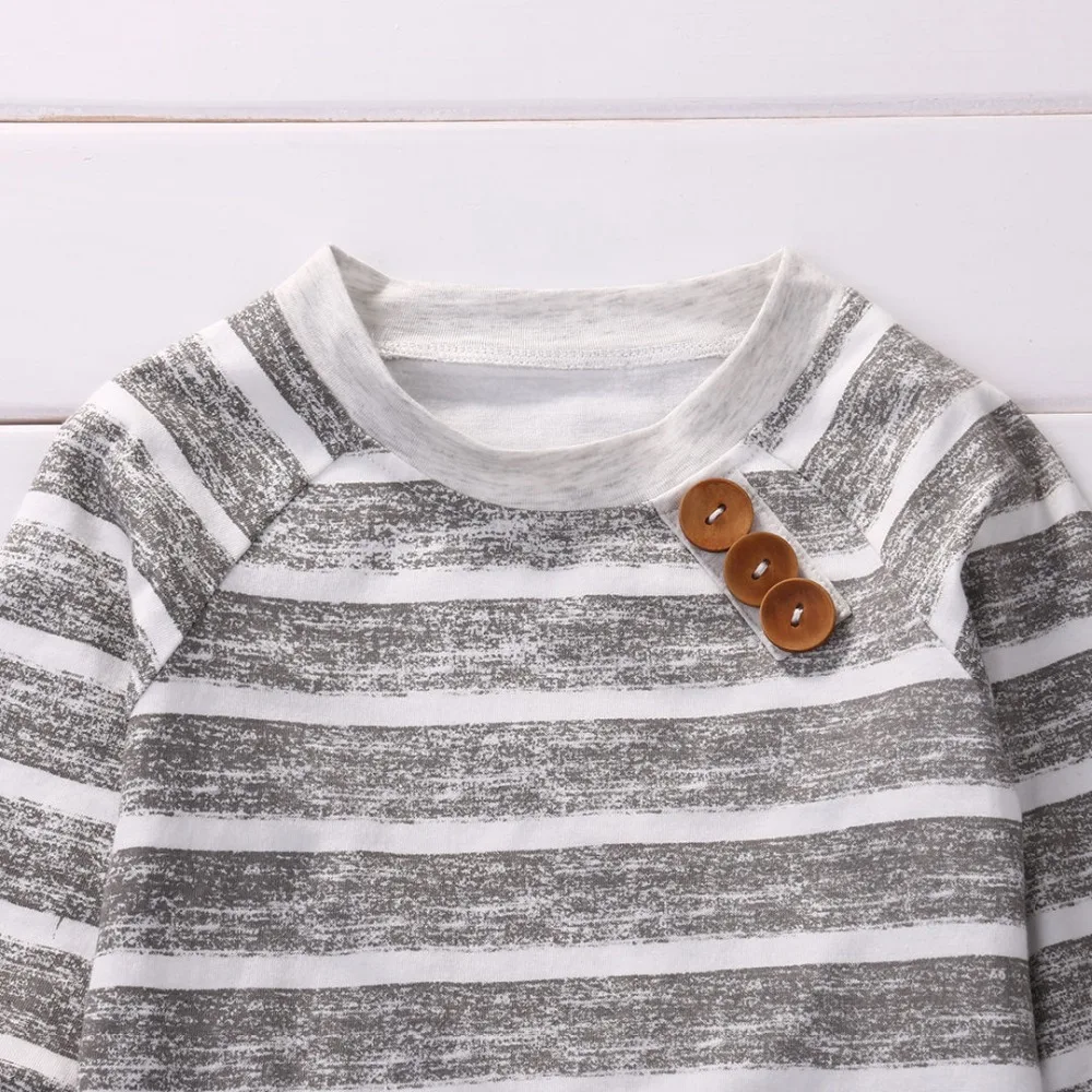 Kid Baby Boy Clothes Set Striped Gray Long Sleeve Top+Pant+Hat 3pcs Brief Bebe Children Clothing Se
