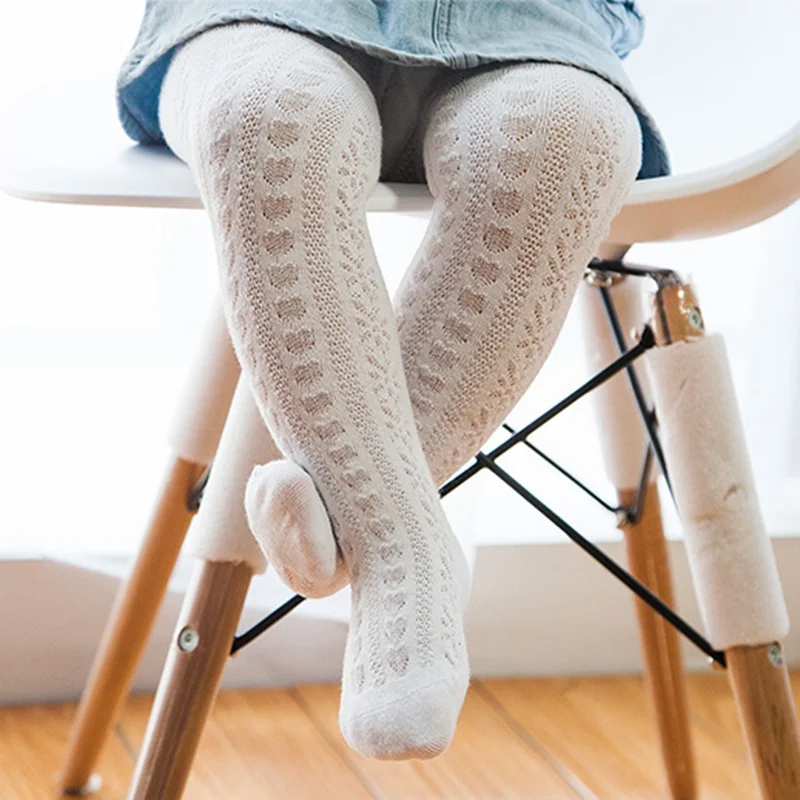 Summer Baby Girls Cotton Knitted Tights Solid Hollow Out 0-3Y Heart Pattern Spring Cute Infant Baby
