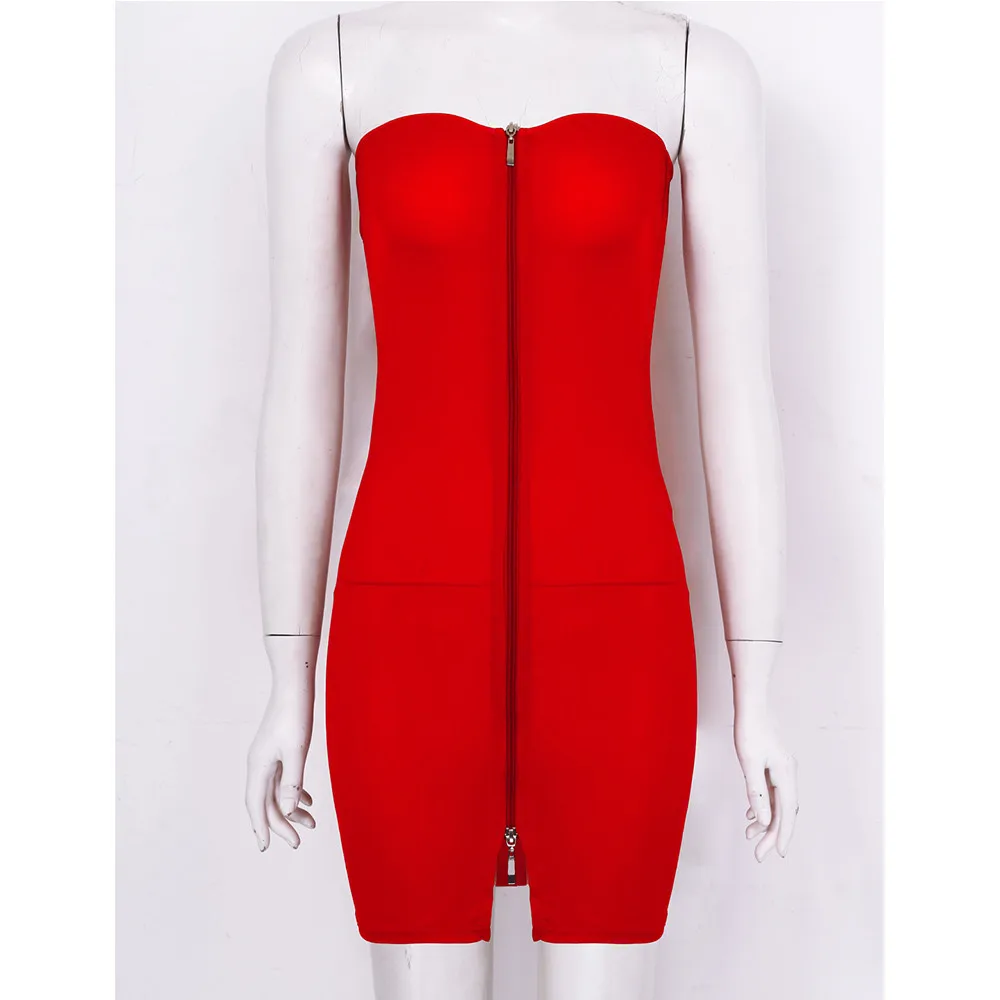 HOT SALE TiaoBug Women Sexy Lingerie Strapless Zipper Erotic Sheer Babydoll Stretchy Bodycon Tube Mini Dress